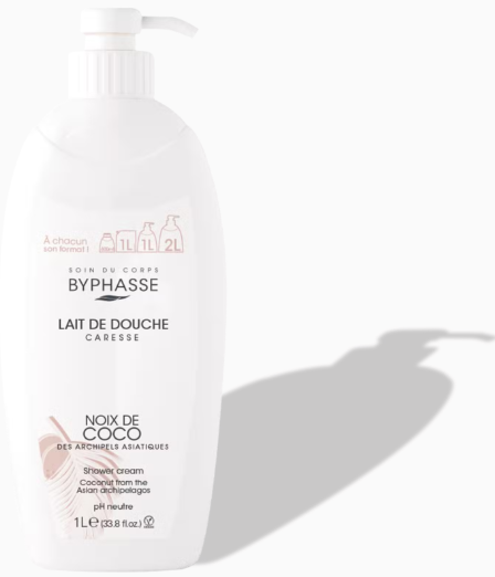 La crema de ducha Byphasse con proteína de leche limpia suavemente la piel con un perfume agradable y sutil.